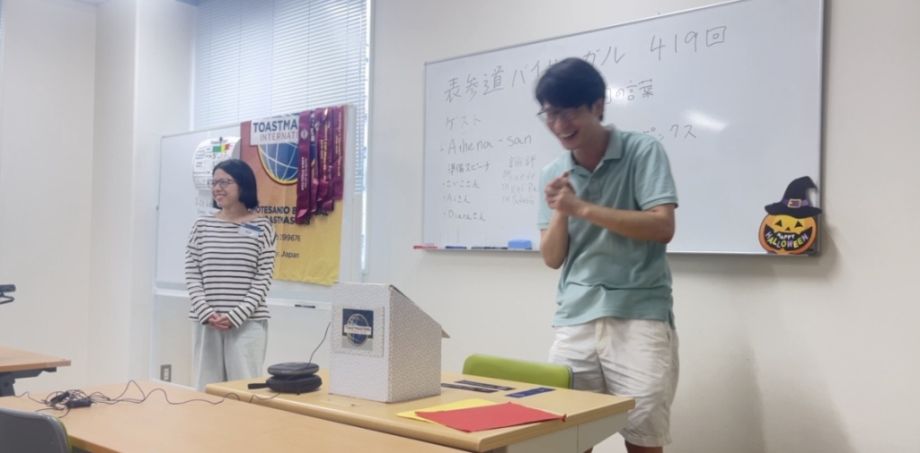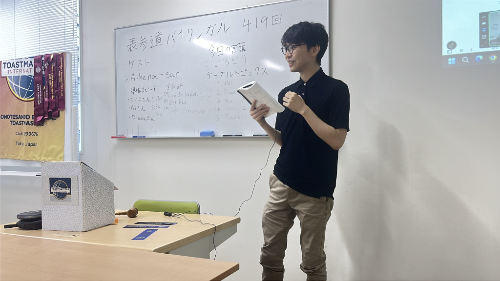 まず、本日のトーストマスター(TM MF)が進行を引き継ぎ、役割紹介と各セッションのポイントを簡潔に共有しました。