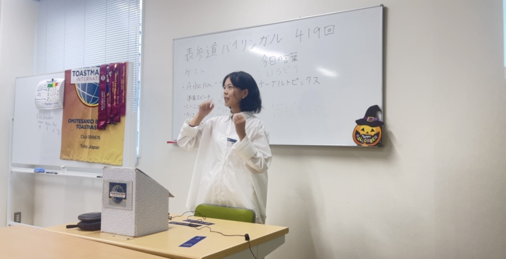 続いてのテーブルトピックスでは、TM I が「AI」をテーマにしたお題を用意。
