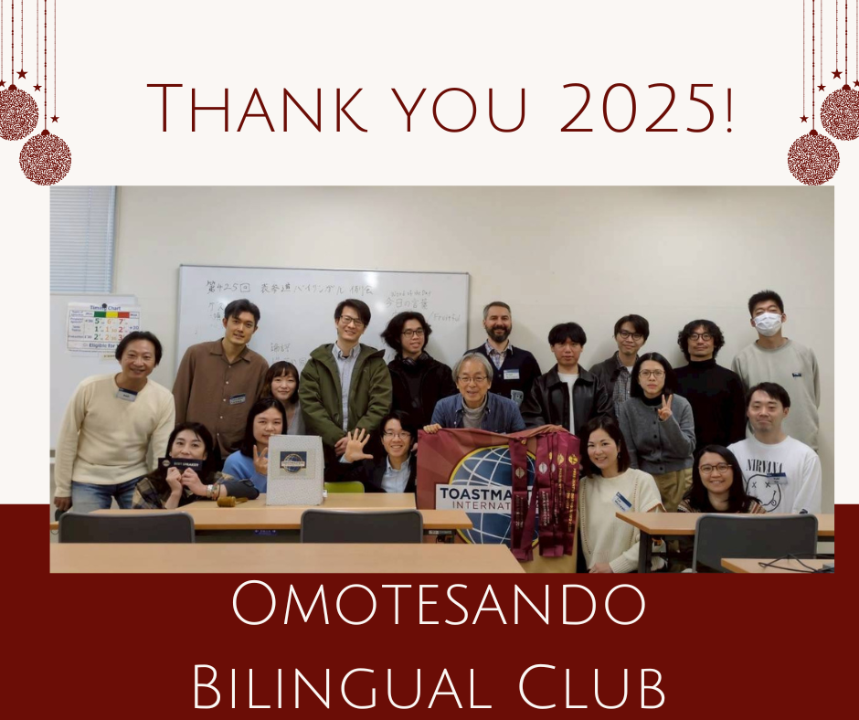 次回の例会は、2026年1月17日(英語)です。2026年、英語力をさらに磨きたい方、新しい友達を作りたい方、仕事で活用できるスピーキングスキルを身に付けたい方、ぜひ見学にお越しください😃