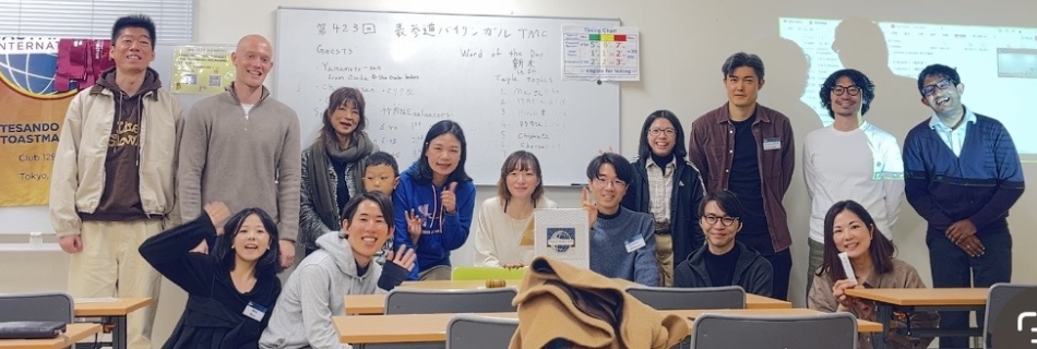 表参道バイリンガルトーストマスターズクラブ第423回例会が開催されました。この日は 4 名のゲストにご参加いただき、そのうちお一人は以前当クラブのメンバーだった方で、嬉しい“お帰りなさい”の再会となりました。 🌟 Goo …